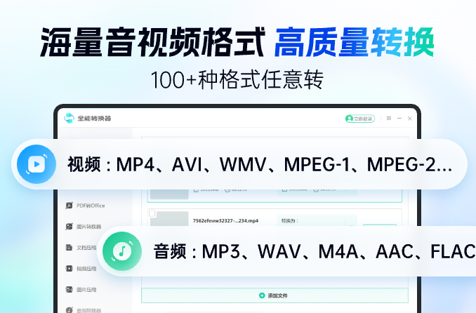 支持音频、视频、图片、PDF等不同格式转换类型。