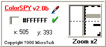 ColorSPY跟一般的色码转换工具不同,它的功能并不在于协助使用者将自行调配的颜色转换成色码,而是允许使用者在屏幕上看到喜爱的颜色时,只要经鼠标一指,就会自动转换出其相对的色码,并将色码复制到剪贴簿中。