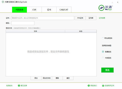 沃通签名工具为Windows平台代码签名提供了一个便捷操作的可视化界面,支持批量签名,支持多种可执行文件、打包文件签名,让代码签名变得简单方便。
