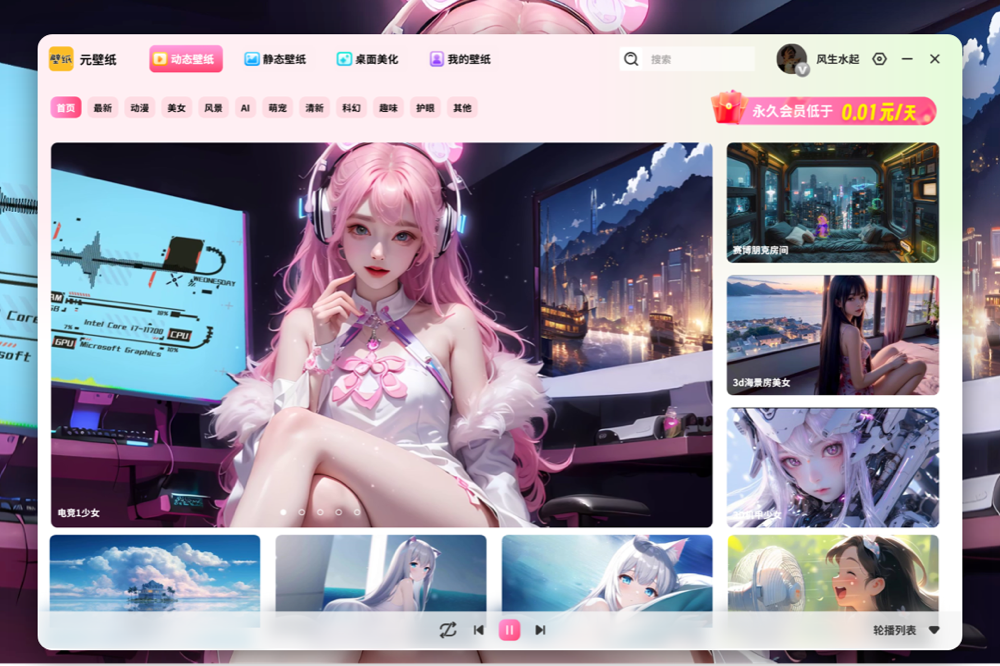 自动换壁纸功能:用户可以开启自动换壁纸功能,软件会根据用户设定的时间间隔和喜欢的图片分类,自动更换壁纸,让桌面天天都有新的气息。