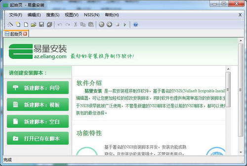 易量安装是一款安装程序制作软件,基于著名的NSIS(NullsoftScriptableInstallSystem)安装脚本开发,软件具有强大的安装脚本编辑器,可让您更加轻松的修改安装脚本,同时软件也提供有简单高效的安装脚本生成向导,可以让您快速创建自己的安装程序,由于NSIS很早就被广泛使用,不管是新建的NSIS脚本还是以前的NSIS脚本,都可以使用本软件进行编译生成安装包,本软件是您制作安装包的不错选择。