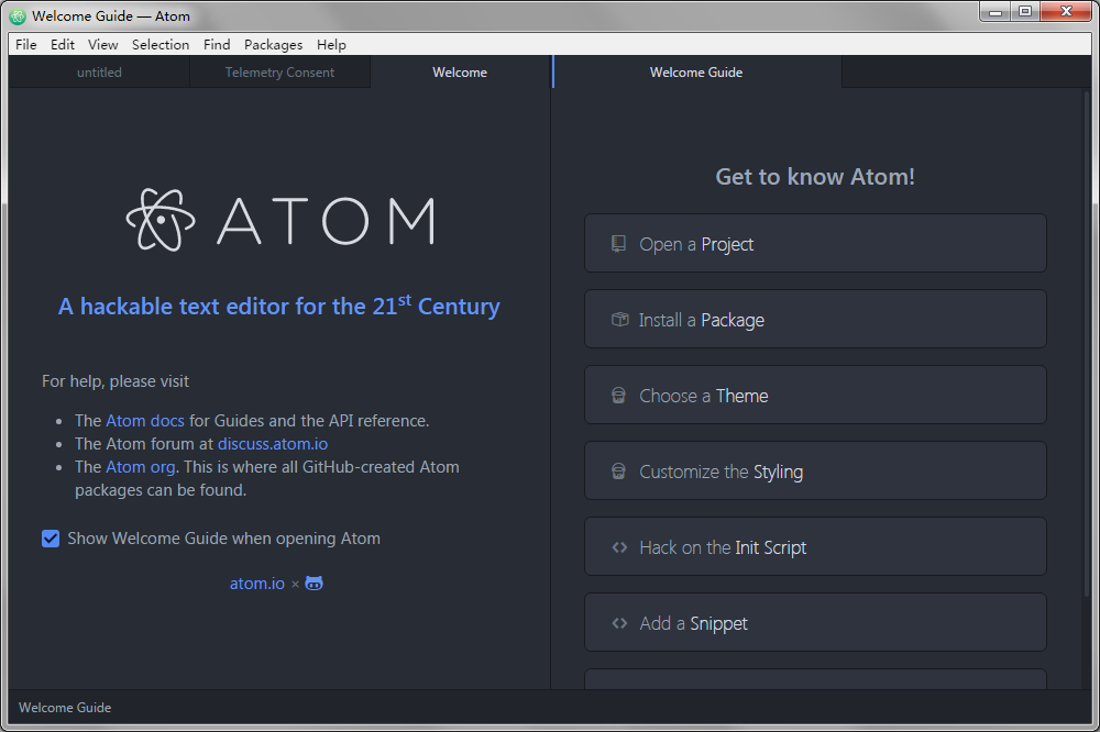 Atom 是 GitHub 专门为程序员推出的一个跨平台文本编辑器。具有简洁和直观的图形用户界面,并有很多有趣的特点:支持 CSS,HTML,JavaScript 等网页编程语言。它支持宏,自动完成分屏功能,集成了文件管理器。