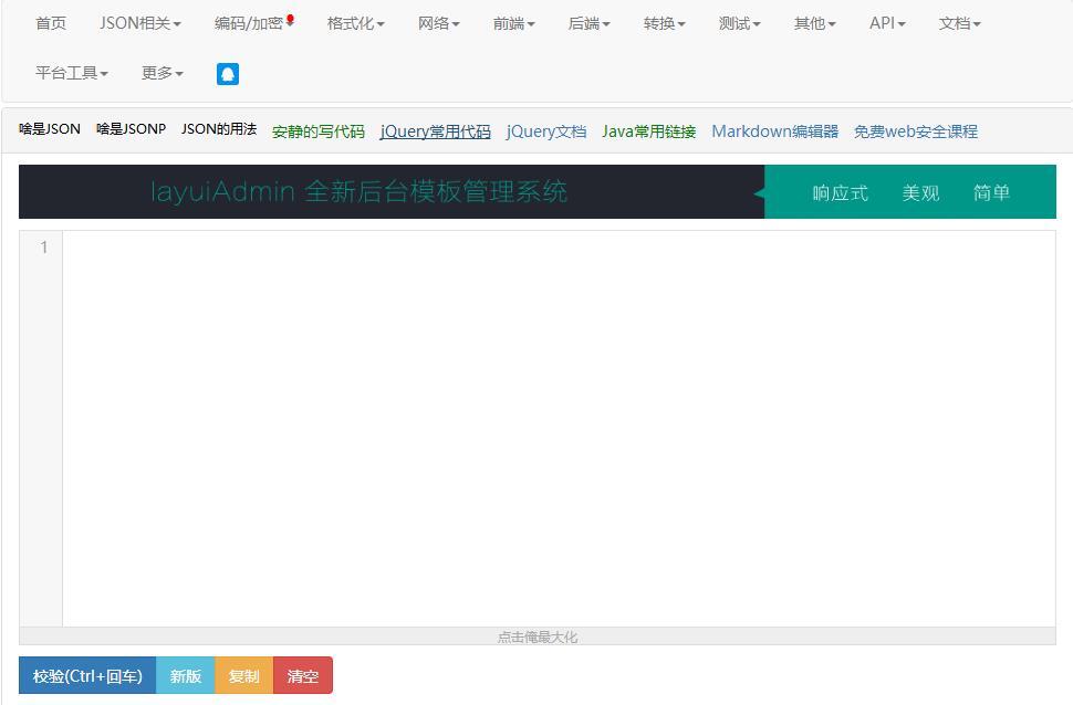 在线的json工具合集,支持json格式化、json验证、xml转json等等,内含前端、后端以及测试工具。