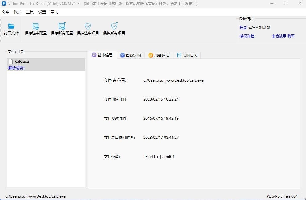 该版本是3.0.2.17493版本的试用版,试用版保护后的软件,在一定时间后会提示是试用版。