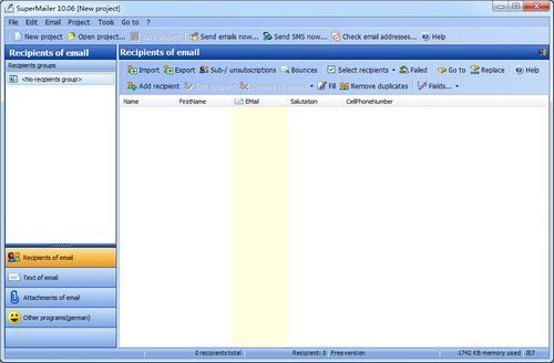SuperMailer是一个功能强大的电子邮件发送器,可以支持最多十线程同步发送。它使用方便,可以兼容来自文本文件、视窗通讯录、微软utlook、Excel或SQL数据库的收件人信息,支持显示发送进度,还包含了黑名单功能。