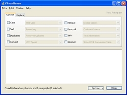 CleanHaven是一个文字处理工具,可清理不需要的文本格式和文本。它可以很容易地除去多余的结果、非ASCII字符、标点符号、空格、制表符、重复的话、非字母(或者非数字)等等。