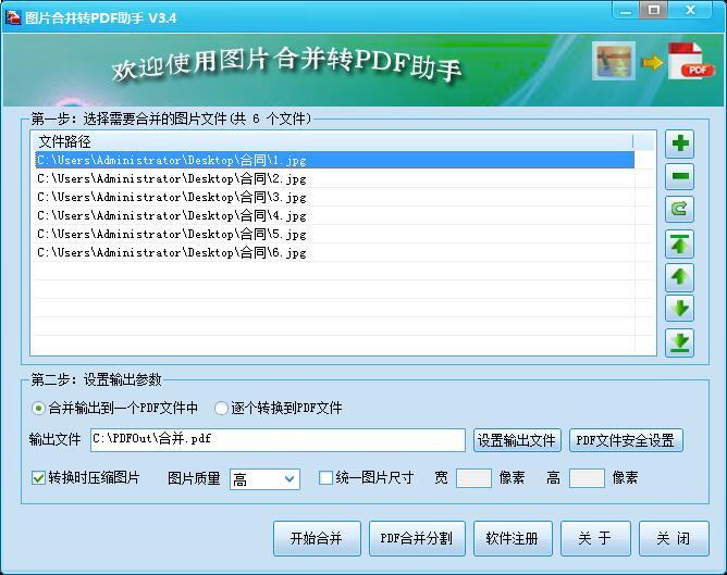 图片合并转PDF助手是由霄鹞软件工作室开发的一款专门将大量图片文件合并输出到一个PDF文件中的应用软件。该软件界面简洁、易用,合并转换速度快,运行稳定,特别适合将扫描的书籍图片文件制作成PDF格式的电子书。