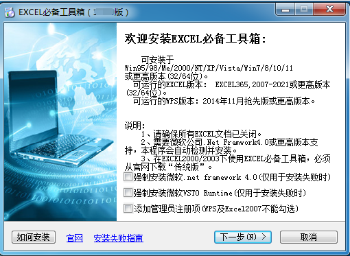 EXCEL必备工具箱智能识别当前是32/64位的EXCEL还是WPS,自动屏蔽WPS已有功能,额外增加WPS专用功能!