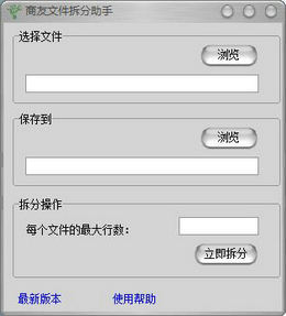 大文件拆分助手可以按行拆分文本文件,并存储到指定的目录中。特别适合于对于数据量特别大的Email地址文件和手机号码文件,同时也可以拆分其他文本文件。