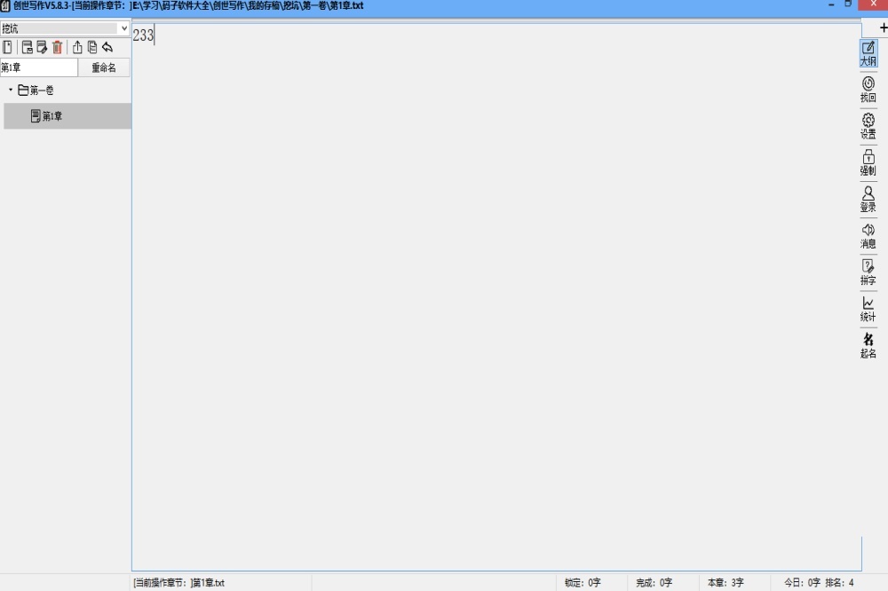 创世写作是一款小说作家的创作码字软件,为网文写手和实体作家提供完美的小说写作环境。软件支持多样换肤、即时保存、智能后台备份、回车备份、一键排版等各种特色功能。软件界面简单大气,可以用它来写小说、写文章、写日记、写大纲非常适用于天天拿word,记事本,还天天担心丢稿作家写手。