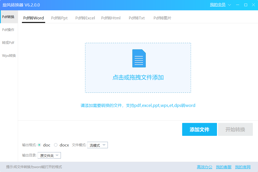 旋风转换器是一款功能强大、操作简单的办公助手。现有的它支持PDF转Word,Pdf转Ppt,Pdf转Excel,word转pdf,ppt转pdf,图片格式转换等转换 功能。同时它还支持PDF分割,PDF合并,PDF压缩,图片压缩等文档操作功能。