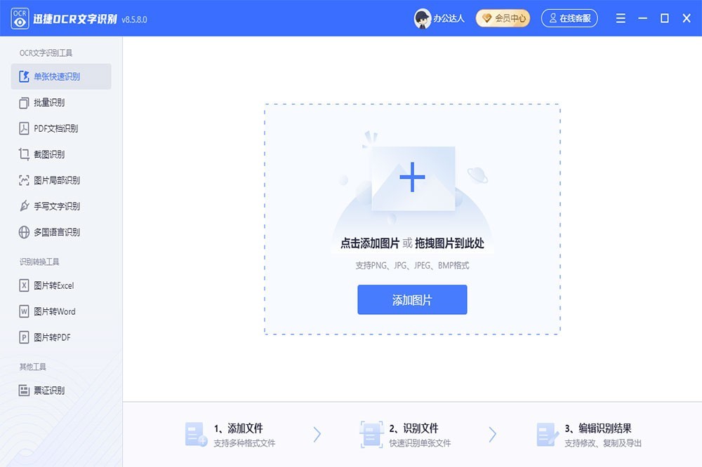 迅捷OCR文字识别软件是一款操作简单的图片转文字软件,为广大用户提供OCR文字识别服务,软件可一键实现图片文字识别、票证识别、图片局部识别、PDF文档识别、语音识别等,可帮助您轻松提取图片中的文字.