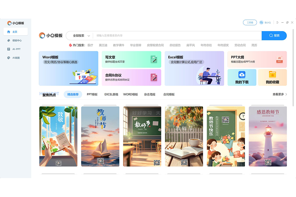 小Q模板,超10万精选模板随心下载。小Q模板2.0版本上线,实现AIPPT,AI生成合同协议,AI生图,AI生成海报壁纸,最快1分钟即可生成,满足您的模板需求。Word模板、Excel模板、PPT模板、广告设计海报模板,覆盖多个行业。找模板,就用小Q模板,专业可靠。 软件主功能: AIPPT:支持PPT大纲文案和模板生成。最快1分钟可生成PPT模板,可修改,可商用。支持论文答辩PPT模板,教学课件PPT模板,病例护理PPT,古诗词课件PPT,市场营销PPT,培训PPT等。 PPT模板:精美PPT模板,可商用的PPT模板。涵盖工作总结PPT模板,毕业答辩PPT模板,竞聘ppt模板,市场营销PPT模板等多个场景使用。 Word模板:精美简历模板,行政管理文档,公司章程协议等。涵盖租赁合同,劳动合同,转让合同,承包合同,合作协议等几十种合同协议场景。 Excel模板:仓储购销,报价单,薪资管理,工资结算表,考勤签到、甘特图模板,公司组织结构图等Excel模板。 海报模板:涵盖图标,人物,节日庆典,精美插画等PSD文件。 AI生图:简单文字描述,即可生成各种高清海报壁纸,几十种画风,满足多样化