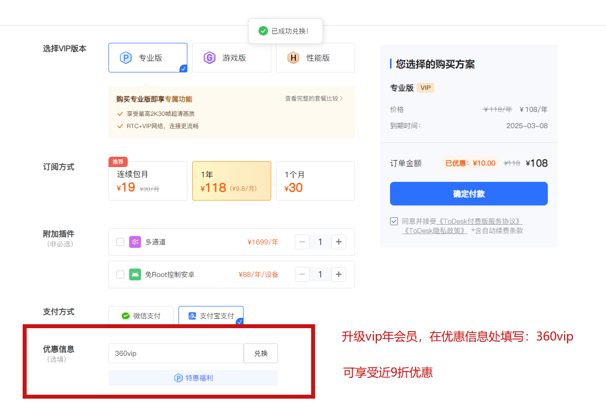 价格合理:ToDesk 提供了多种付费方案,包括免费版和个人付费版,以满足不同用户的需求。