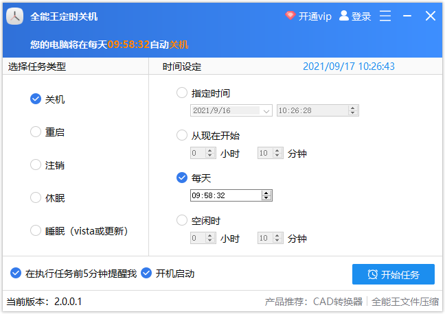 全能王定时关机软件是家长和电脑管理人员的好帮手、满足各种对电脑定时关机有需求的用户,具有电脑定时自动关机、重启、注销、休眠、睡眠,5种强大功能。具有指定时间、运行时长、每天执行、空闲执行多种执行任务方式。