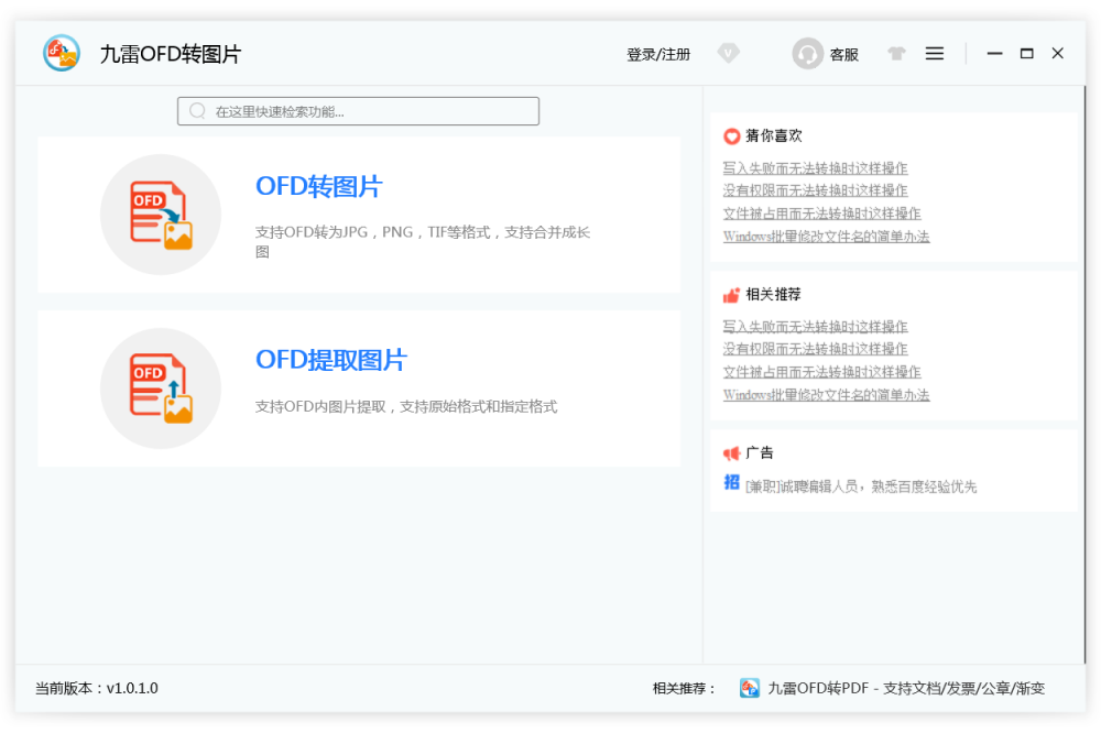 九雷OFD转图片电脑版,专为OFD转换图片设计的批量转换软件。
