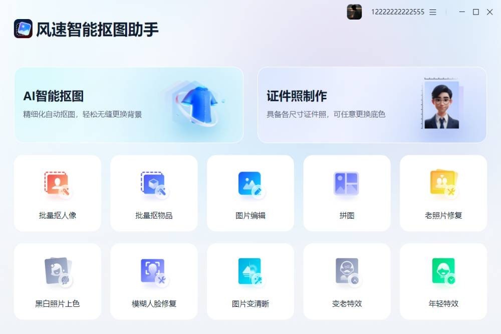 软件简介 智能抠图助手是一款结合了AI智能抠图、批量抠人像、批量抠物品功能的软件,同时提供证件照制作、图片编辑、老照片修复等多样化图片处理服务。不仅能让您轻松完成抠图操作,还能够帮助您制作创意图片,满足日常的图片处理、图片编辑与文生图需求。 软件特色 智能抠图:精细化自动抠图,轻松无缝更换背景 证件照制作:提供各种类型、尺寸让你轻松制作证件照 批量抠图:提供多种抠图功能,如人像、物品等 其他工具:支持图片编辑、拼图、照片修复、上色、以及其他特效等 使用帮助 1、 下载软件 点击打开智能抠图助手软件官网,点击下载安装软件 2、 选择功能 打开软件后点击主功能中的智能抠图功能 3、 调整图片 接着上传需要抠图的图片,还可对扣好的图进行二次编辑、细节优化等操作 4、 立即保存 修改完成后点击下方下载保存即可