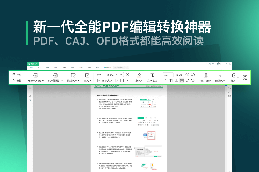 迅读PDF是一款超轻巧的PDF阅读编辑软件,启动速度极快,占用内存极少,不仅能秒开各种PDF格式的文档,也能直接阅读CAJ和OFD格式的文档。迅读PDF编辑器支持自由编辑PDF文件,可以轻松修改PDF中的文字与图片,执行OCR后,扫描件也能直接编辑和搜索。