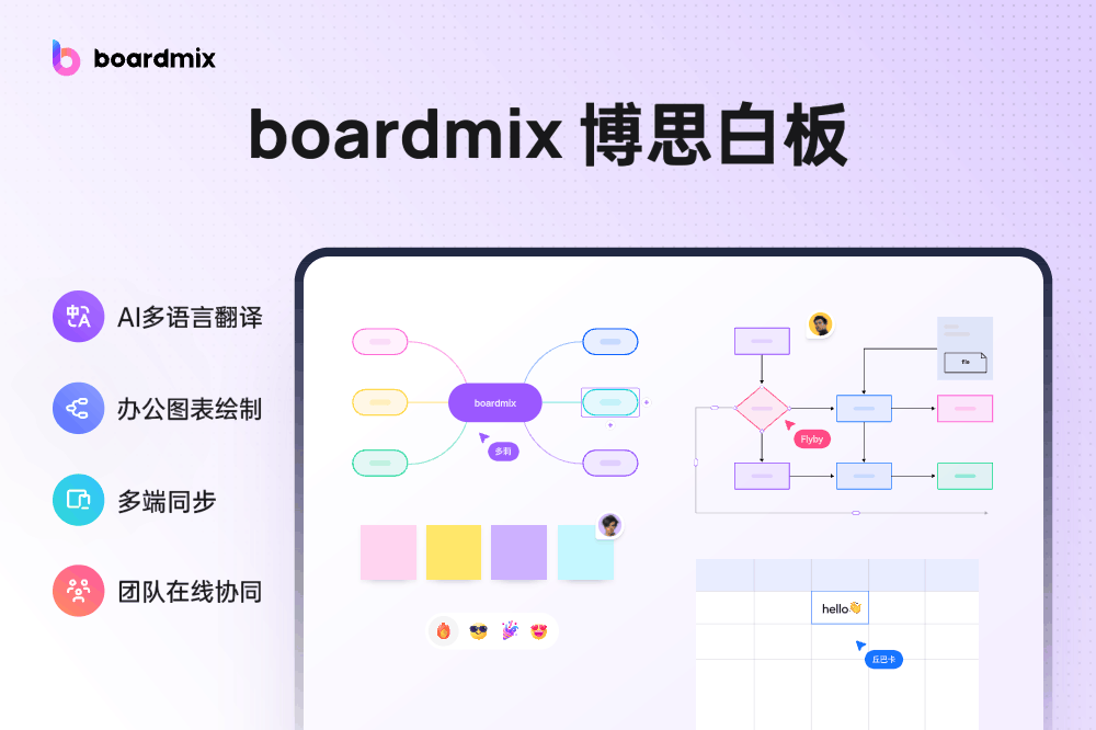 boardmix是一款集思维导图、流程图、多种创意表达绘图工具于一体的数字化多人在线实时协作平台,聚焦多人协作下的场景解决方案,加快团队之间的信息流转,降低协作成本,提高业务效率,让您数字化实时协作更顺畅、表达更简明高效。