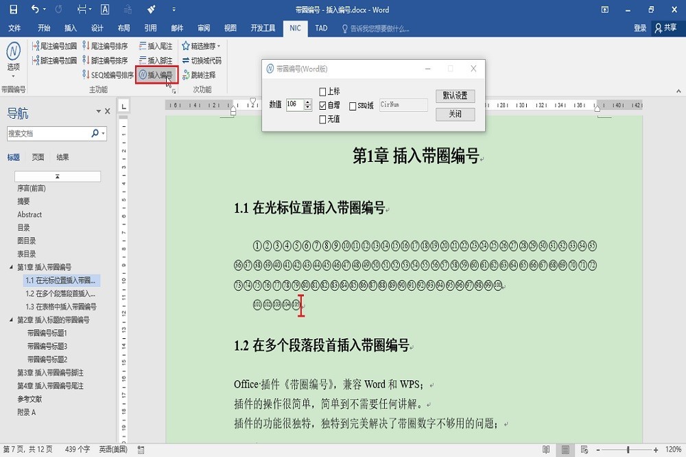 带圈编号(英文名:NumberInCircle,简称 NIC)应用程序是专门针对带圈数字不够用的问题而开发的一款 Office 插件(兼容 Word 和 WPS)。