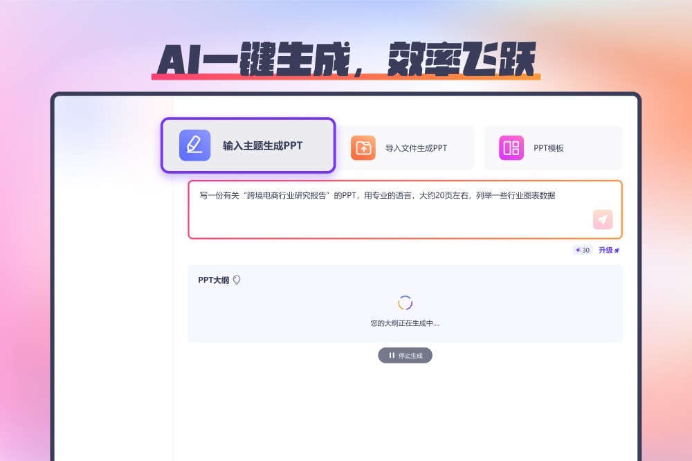 ✅通过输入主题或导入文件,快速生成专业PPT,提升工作效率。