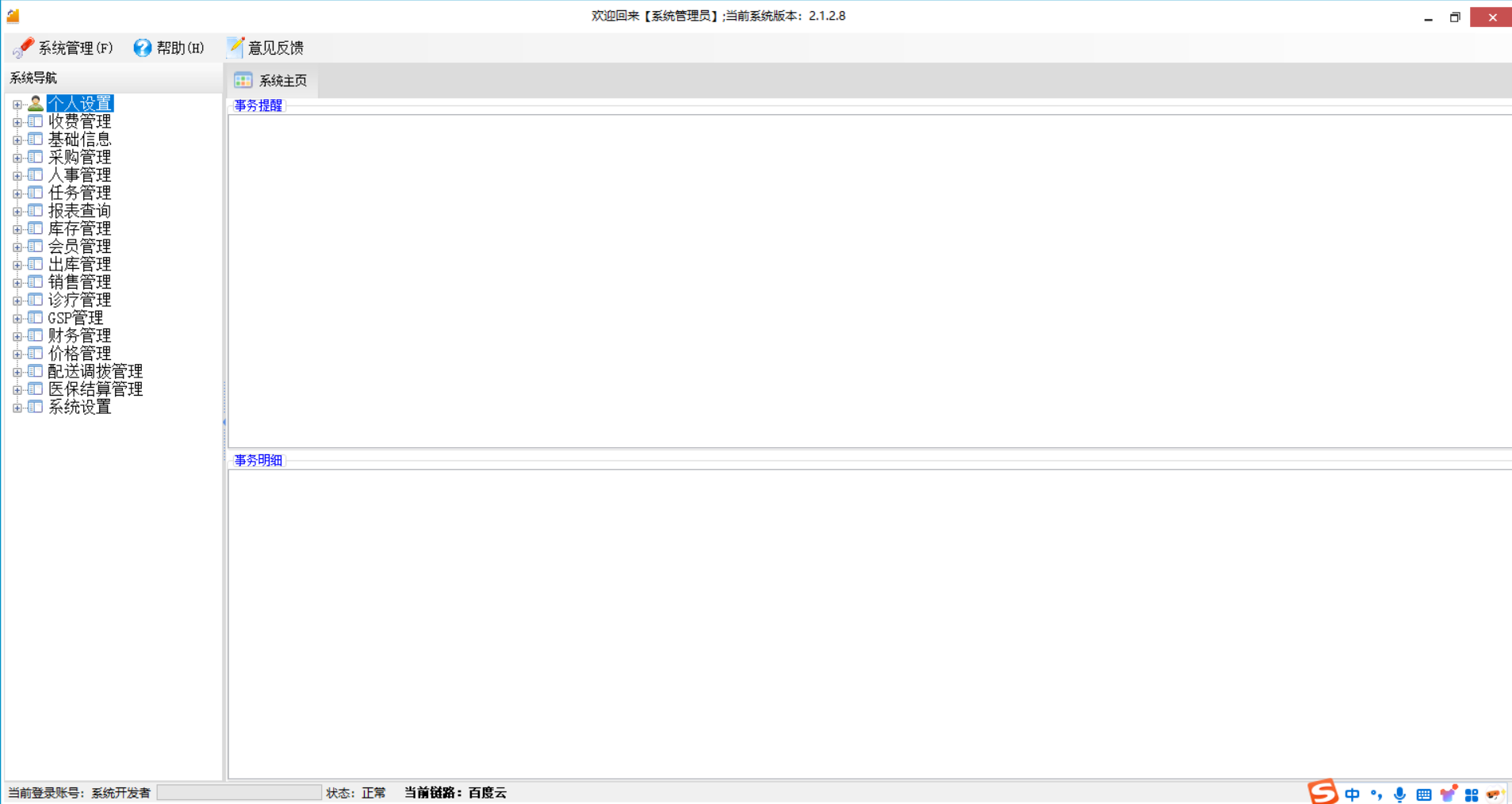 本软件的主要功能包含录入采购订单,采购入库采购退货,库存明细/汇总查询,商品盘点,报损报溢,开具报表,上传药品追溯,药品信息追溯,对接医保,医保结算,收录药品种类,对账等