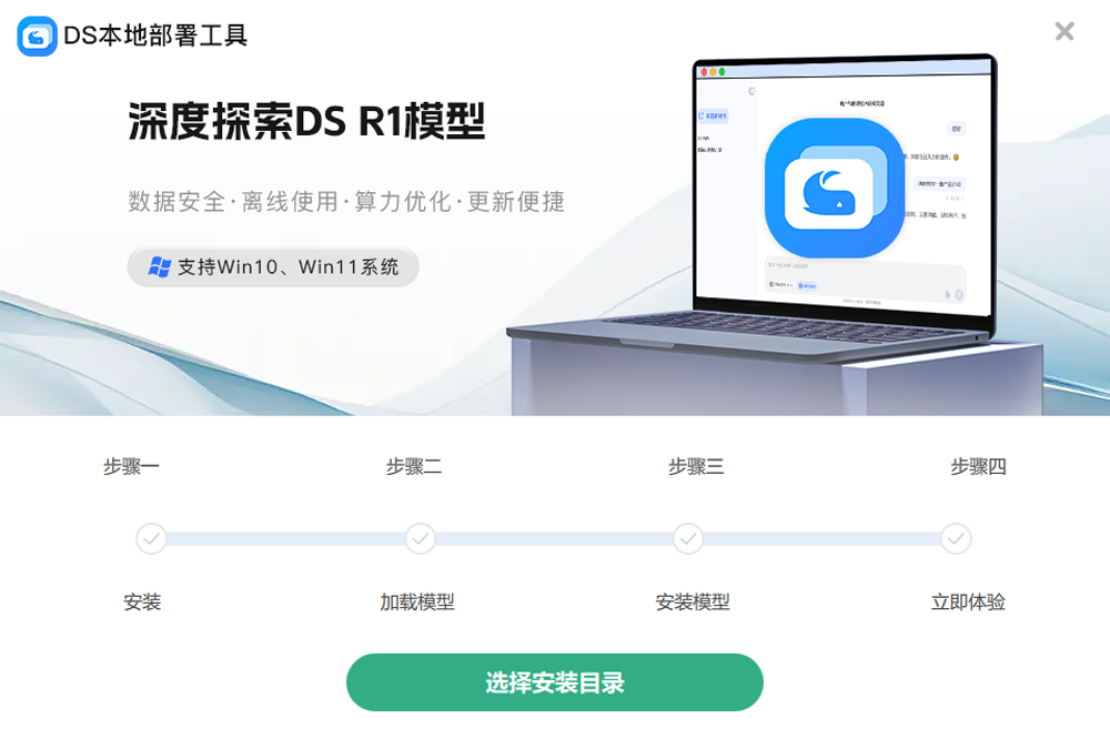 DS深度探索—R1一键安装是一款致力于实现AI功能快捷高效地本地部署工具,支持本地模型一键部署