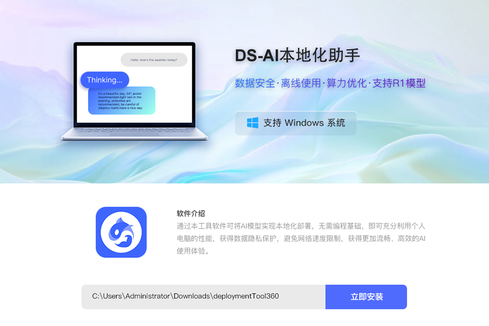 通过本工具软件可将Al模型实现本地化部署,无需编程基础,即可充分利用个人电脑的性能,获得数据隐私保护,避免网络速度限制,获得更更加流畅、高效的A使用体验。