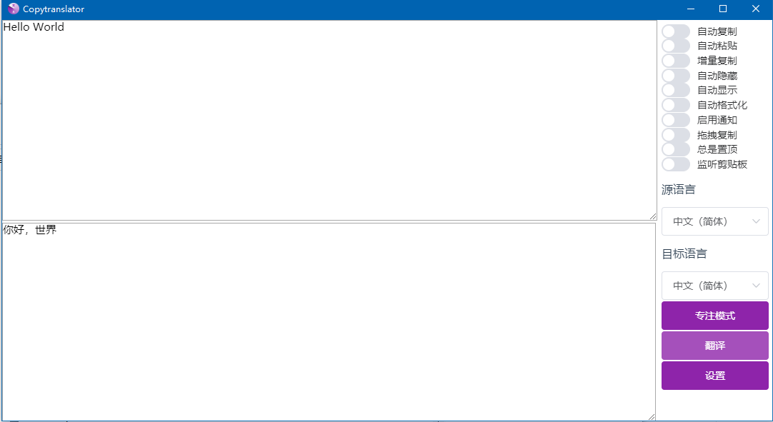 CopyTranslator官方版是一款十分出色的翻译工具。CopyTranslator官方版界面美观大方,功能强劲实用,支持几十种不同语言的互译,支持对多段文字进行快速的翻译,使用起来简单便捷。CopyTranslator还有丰富的选项可以设置,有效提高人们阅读及翻译外文文献的效率。