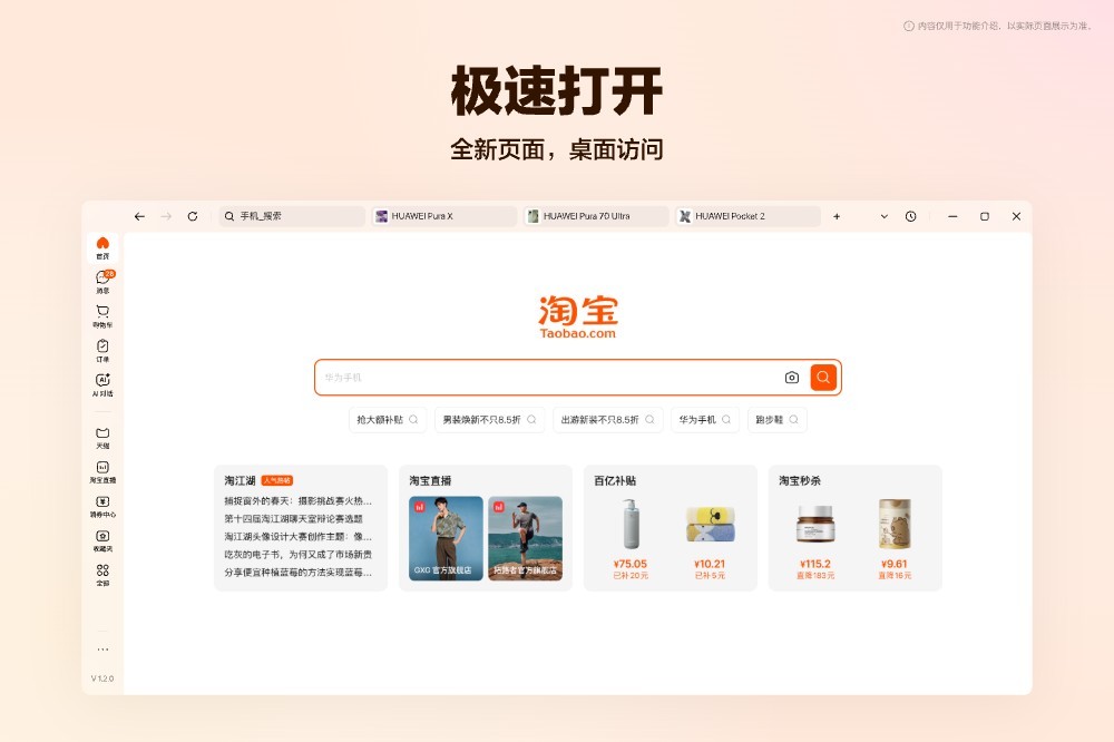 淘宝桌面版——开源模型通义Qwen3和DeepSeek,无限量使用,用电脑逛淘宝更方便。