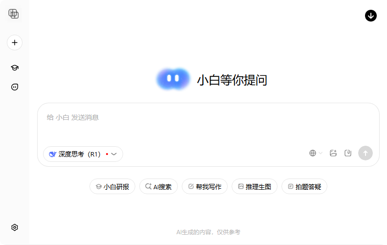 问小白让你更有料, AI 智能聊天, 问答助手, AI 智能搜索, 免费无限量使用 DeepSeek R1 模型,支持联网搜索。