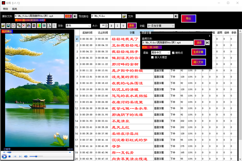 经剪软件一款集视频编辑、字幕处理为一体的媒体编辑软件,她能一键生成字幕,自动对 人物进行抠像,能把多幅图像转成视频,还能为视频配置音频并增加水印,同时可反向操作,从视频中截取图像,提取纯音频、提取纯视频,对视频各种格式互换,视频音频合成,生成各种格式字幕,让字幕缩放、移动、旋转,生成流星雨、烟花、彩镜等特性,可以对视频、音频可以进行任意格式转换。