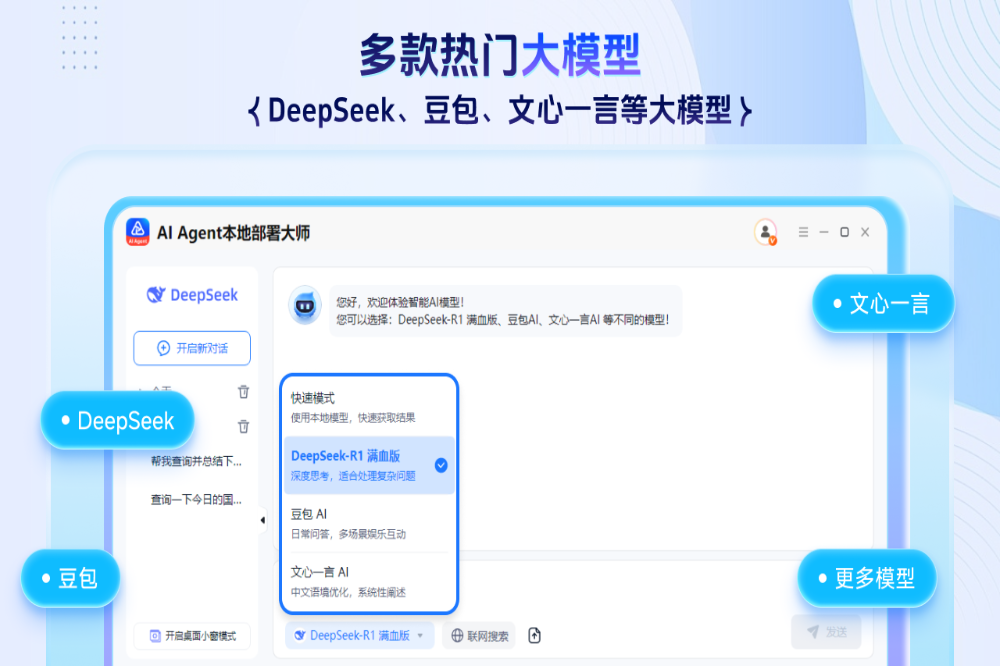 AI agent本地部署器为便捷部署通用型AI助手AI Agent打造,让智能应用触手可及。区别于普通聊天机器人,AI Agent不满足于“聊聊天”,更能把想法转化为行动,独立完成从数据采集、分析到生成可视化结果的全流程任务,高效解决实际工作难题。