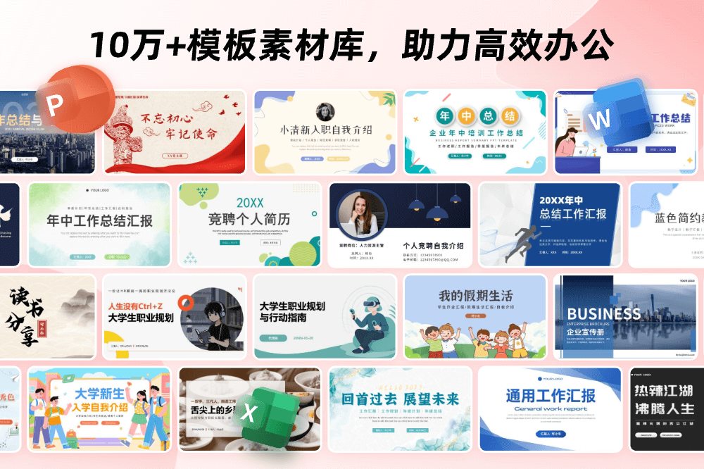 10万+Office模板素材库和AIPPT,助力高效办公 1、精品设计Word模板,满足多场景需求 2、多样Excel图表设计,轻松搞定表格创作 3、海量高级PPT模板素材,一键使用 4、AI助力,智能高效创作PPT