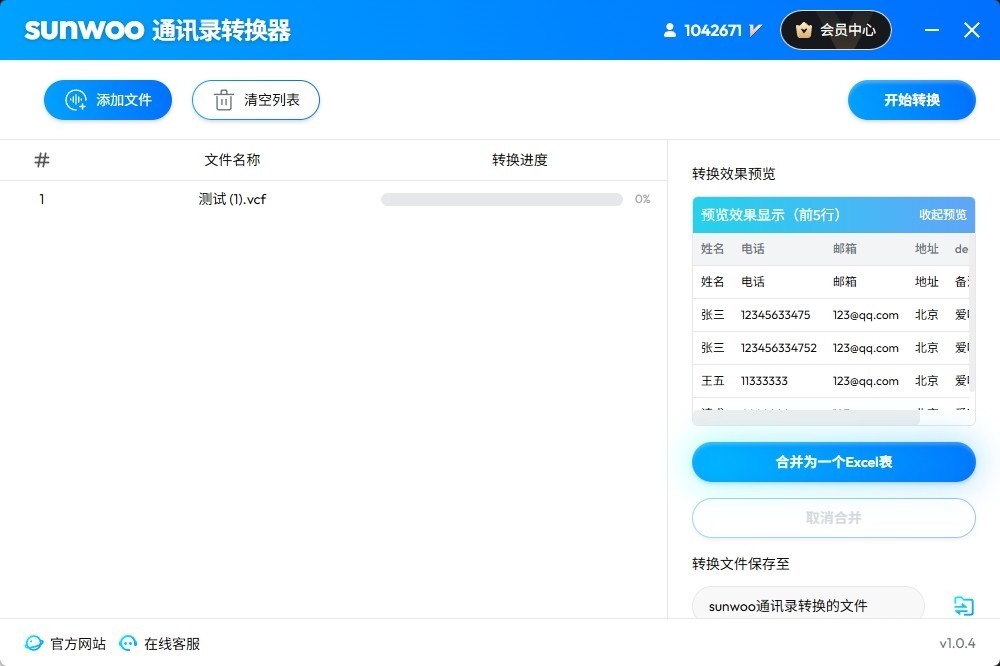 sunwoo通讯录转换器是一款功能强大且安全可靠的联系人管理工具,能够轻松实现VCF、Excel和CSV格式之间的加密转换和实时预览。它不仅支持批量处理多个文件,还能让用户自定义转换模板,灵活配置字段映射关系,满足个性化需求。软件特别提供了Excel文件分割和VCF合并功能,可智能处理重复联系人,使联系人管理更加高效便捷。所有转换操作均在本地离线完成,无需联网,确保您的联系人数据绝对安全不外泄。无论是手机联系人备份迁移、CRM系统数据导入导出,还是跨平台联系人共享,这款软件都能成为您得力的助手,让繁琐的数据转换工作变得简单又安全。