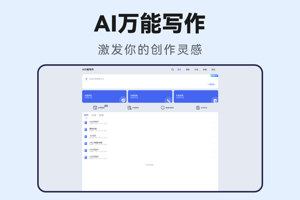 AI万能写作,一站式AI写作内容平台,帮助获取创意灵感,超强大模型支持,灵感一触即发!AI万能写作,你身边的智能ai写作神器。