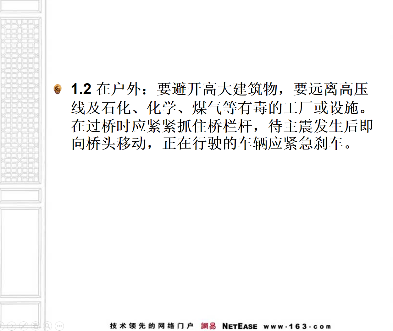 图文结合的漫画防震安全手册,简明易懂。中国灾害防御协会网站的文章指出,在震中及其附近地区,从地震发生到房屋倒塌,一般有12秒钟左右的时间,作为个人,应当保持冷静,并在12秒内作出正确躲藏的抉择。而懂得科学有效的防范和自救方法,能将地震给我们带来的生命和财产威胁降到。