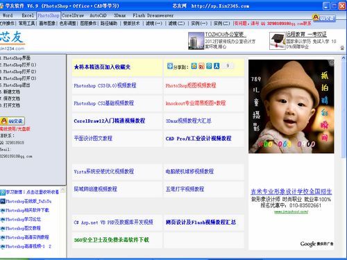 免费软件,手把手动画语音视频教程教你学习Word Excel PhotoShop CorelDraw AutoCAD 3Dmax Flash Dreanweaver,三天学会,七天成为高手,本软件由浅入深,逐步讲解,让你短期成为高手,立竿见影!本视频教程软件免费,内含近十种常用软件的学习教程!