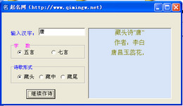 软件特点:只需输入几个汉字 ,系统就可以自动生成具有唐诗风格的藏头诗。可以用来做姓名藏头诗、爱情藏头诗、祝福藏头诗等等。