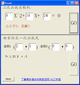 用于求二次函数的根。并加入了根据两个点坐标求f(x)一次函数的解析式的功能。适用于初中及以上学习者。 有了求根机,工作学习更轻松!