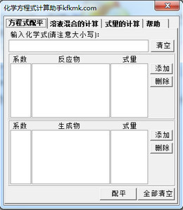 化学方程式计算助手能够帮助学生练习各种化学公式 ,如模拟方程式的配平、溶液混合的运算、式量的计算等