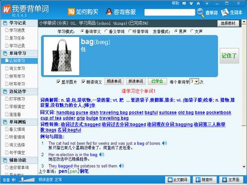 《我要背单词》是上海静嘉科技推出的学英语软件,根据艾宾浩斯记忆法研发的背单词功能,使您的学习事半功倍。我们为您提供了包括小学、初中、高中、大学、硕士、博士、出国考试、成人考试以及分类单词几百种教材。