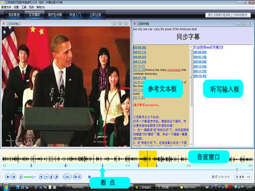 超级影音复读听写软件,支持多种复读控制方式和可视化复读操作,能为几乎所有影音格式提供音波显示支持和可视化复读操作,并快速导出手机版专用复读课件!智能分句、一键复读、答案显隐、直接听写、进度保存、音波显示、设定速率等强大功能,多维度高强度提升听力,不但可以学外语,用它复习视频学习资料,建立电子课堂更是如虎添翼。