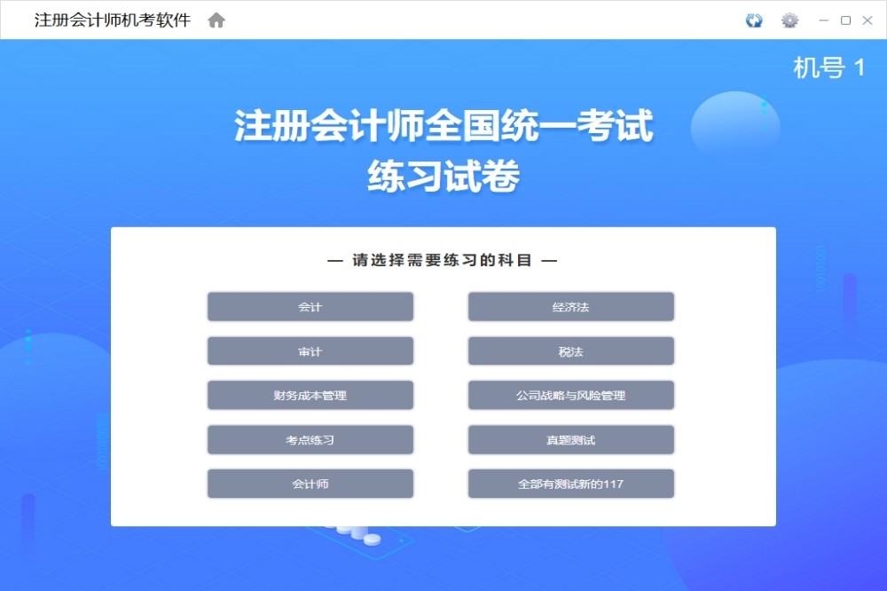 注册会计师机考软件,是国内一款针对注册会计师考试而研发的免费考试系统。考试科目全覆盖,包含注册会计师考试的六门科目;真题演练更有效,包含历年的考试真题,综合性检测整体知识的掌握结构;仿真系统更真实 ,模拟真实考试的流程、页面、步骤、题型,提前感受真实的考试环境。还有更多优质的服务有待您的探索!