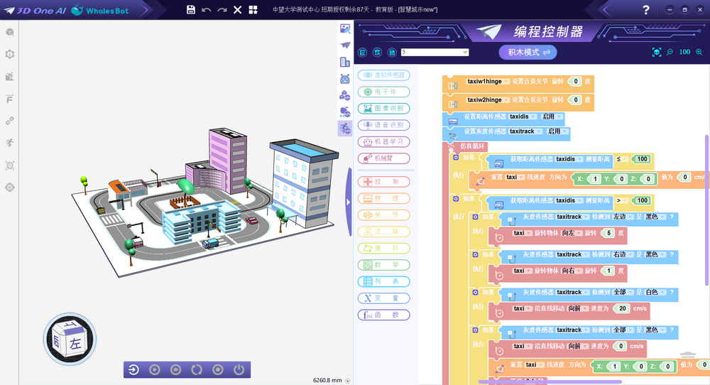中望积极响应人工智能教育政策,针对中小学人工智能课程教育的实践性、综合性、发展性的课程性质,打造了全新的人工智能三维仿真平台,集人工智能、三维创新设计、开源硬件、编程于一体,并根据8~18岁孩子的教育特点,开发出适用于中小学教育难易度的产品——3D One AI。3D One AI基于物理刚体与世界时间的概念,具备强大的三维数据处理能力与显示能力,孩子可通过编程或界面交互的不同难易程度的操作,灵活运用平台的虚拟开源硬件技术与人工智能技术,动态仿真人工智能行为并支持输出三维动画,了解并掌握人工智能,通过动手实践综合学习多学科知识。并基于虚拟机器人仿真竞赛,3D One AI与鲸鱼机器人共同打造了此版本。