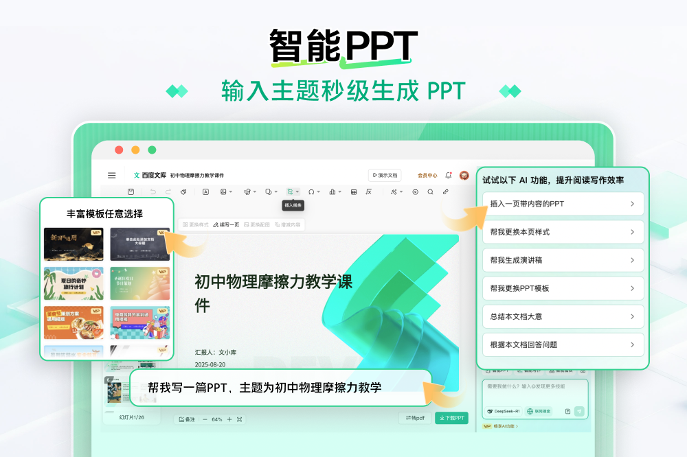 2、基于主题或文档,快速生成多图PPT,海量精美PPT模版随心选择,一键搭配应用;