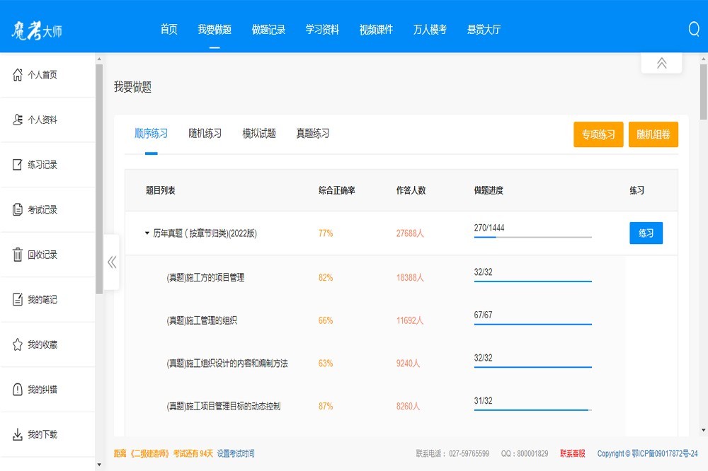 魔考大师,是一款具有随机练习、顺序练习,专项练习、随机组卷、历年真题和模拟考试功能全面考试软件,包括建筑行业的一二级建造师、造价工程师、监理工程师、消防工程师等,贴心的功能,强大的题库,加上完善的功能体验,让考生随时随地都可以享受到考试的乐趣,充分利用碎片时间,考试通过不再是梦想!