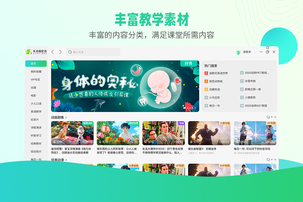 英语趣配音电脑版是一款英语学习软件。它可通过1-2分钟的短视频配音,以此可让用户的英语学习充满各种的乐趣。这款软件每天24小时都会不间断更新目前最新最火的美剧、动漫、歌曲等视频资源。软件最主要的功能就是可以让用户的声音出现在任何一部英语电脑,也就是俗称的“配音”,而且英语趣配音电脑版为了让没有配音基础的大家能够快速上手,软件会将视频中的每一句都单独列出来,大家可以一句一句的去配音,如果用户的口语水平很高,配出来的效果会很好哦。此外,用户还可通过程序自带的UGC通道上传自己喜爱的英语类视频,供英语学习爱好者配音学习英语,让用户在玩转配音的同时,不知不觉提高英语口语水平。