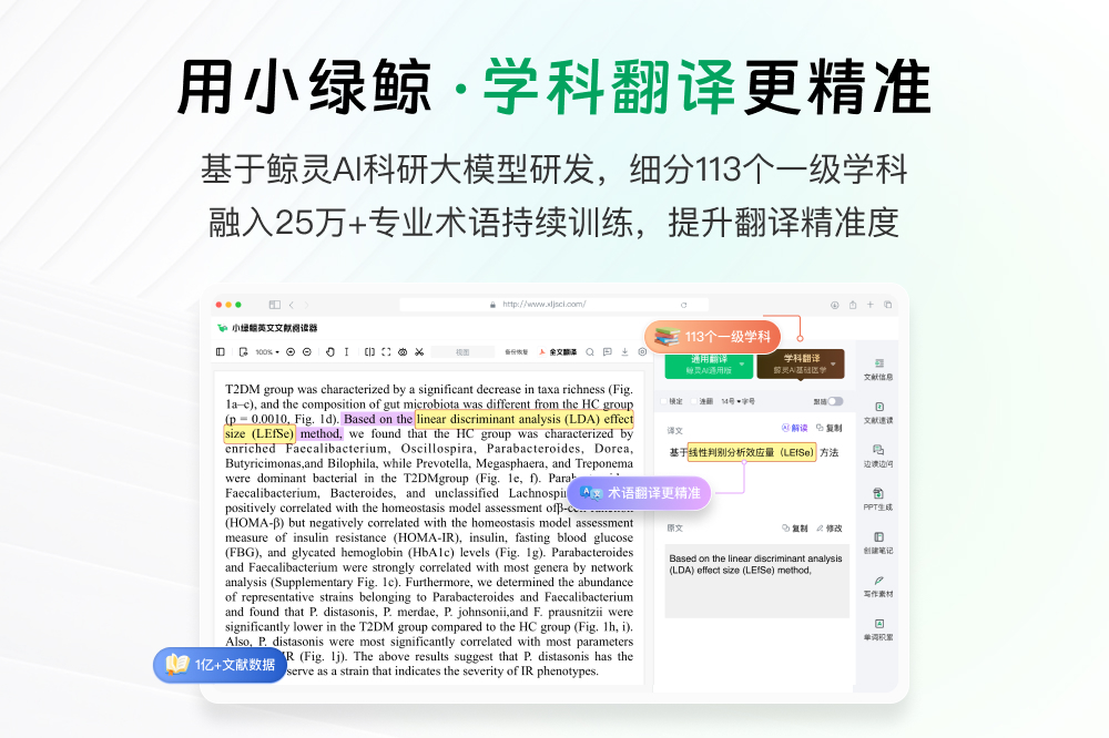 小绿鲸是一款专注提高英文文献阅读效率的软件,是专为科研人读SCI而设计,它涵盖5大翻译引擎,精准度“近似真人”;可以做笔记、有全文解析+文献速读、帮科研人分类管理文献,是集翻译、文献管理、笔记、速读、解析、写作、云端阅读功能于一体,并且针对【选题、做实验、写论文、组会汇报】 [3] 四大文献阅读场景设计了专业的解决方案,最重要的是手机、平板、电脑可同步数据阅读,完全就是随时随地、高效读文献,从各个环节提高科研工作效率。
