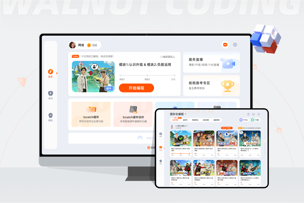核桃编程,专注于少儿编程领域的在线教育品牌,专为用户匠心打造的移动少儿编程学习平台,随时随地学编程,孩子超爱效率高!剧情动画课程,渗透多领域知识,激发学习兴趣。提升逻辑思维,激发孩子五大潜能:独立思考、想象创造、专注能力、学习习惯、语言表达。核桃编程大品牌,获得国家在线教育5A级认证。科学进阶,一站式学编程,贴心服务,全程跟课辅导,助力全面进步。